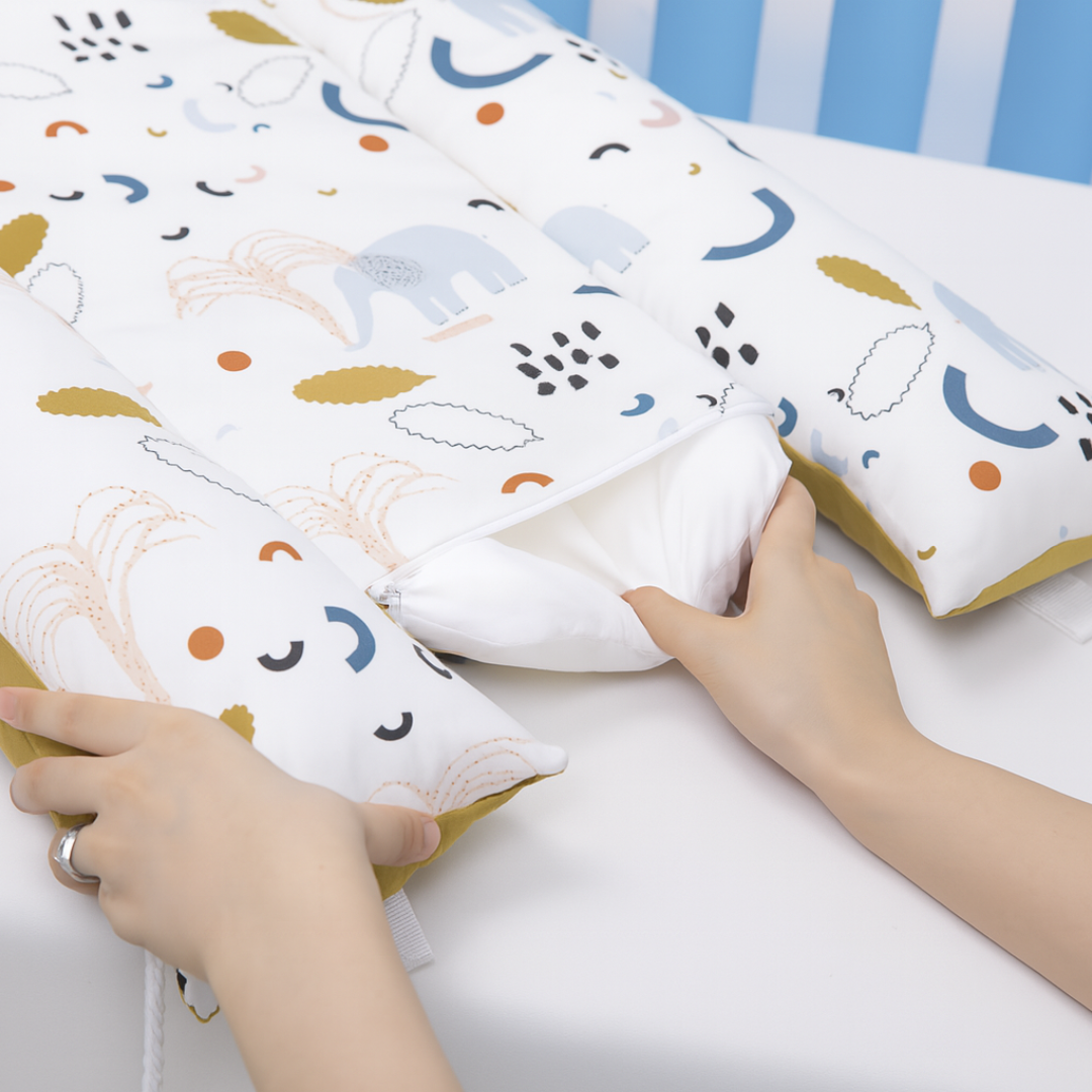 Ce réducteur de lit est conçu en 100% coton de haute qualité, certifié OEKO-TEX, garantissant ainsi une douceur et une respirabilité exceptionnelles pour la peau délicate de votre bébé. La sécurité et le confort sont notre priorité !
